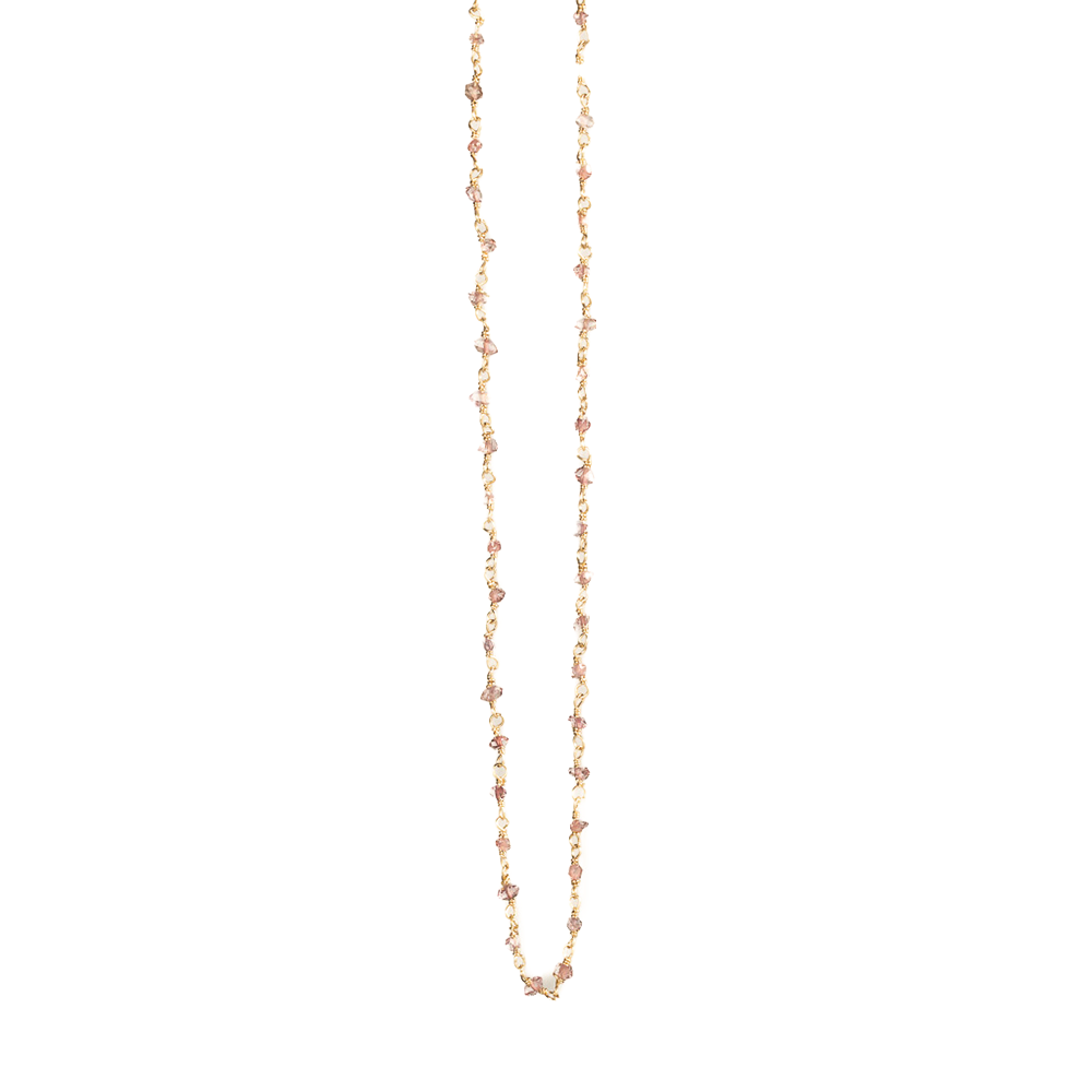 Collar con diamantes herkimer rosa, goldfilled y cadena de oro
